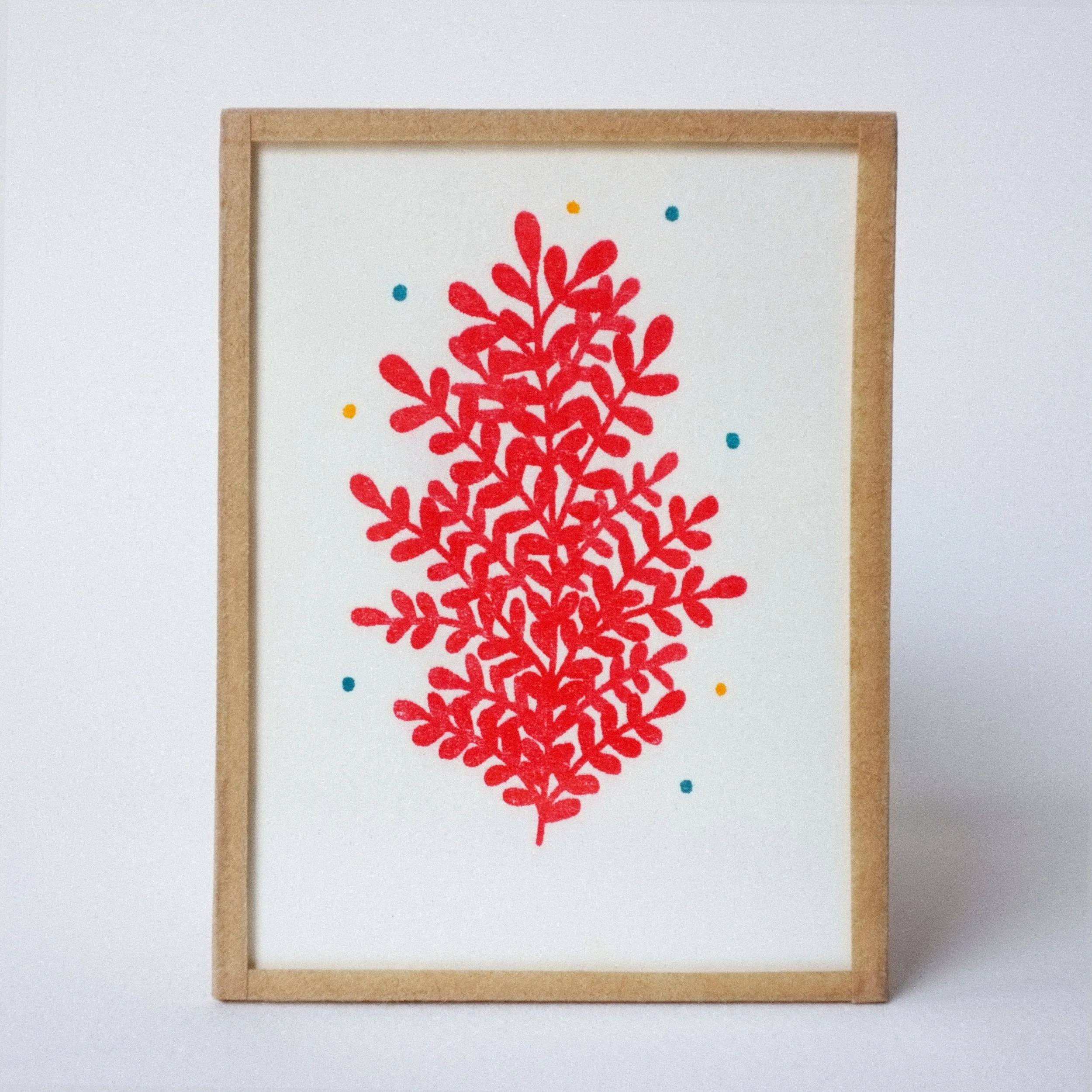 Illustration végétale imprimée à 30 exempalire en Risographie et encadrée à la main dans mon atelier rennais.